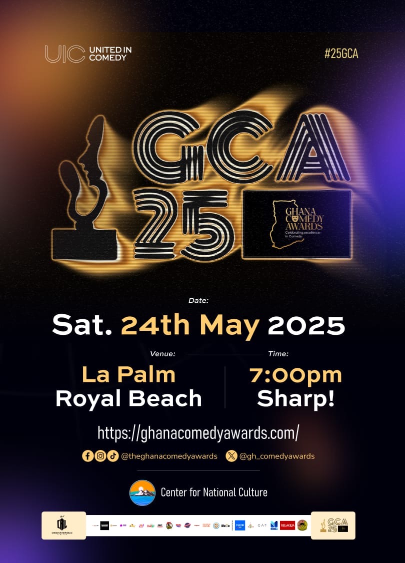The biggest Comedy Night in Ghana, the Ghana Comedy Awards takes place on 24th May, 2025 at the La Palm Royal Beach at 7pm Red Carpet and 8:30pm Main Event.