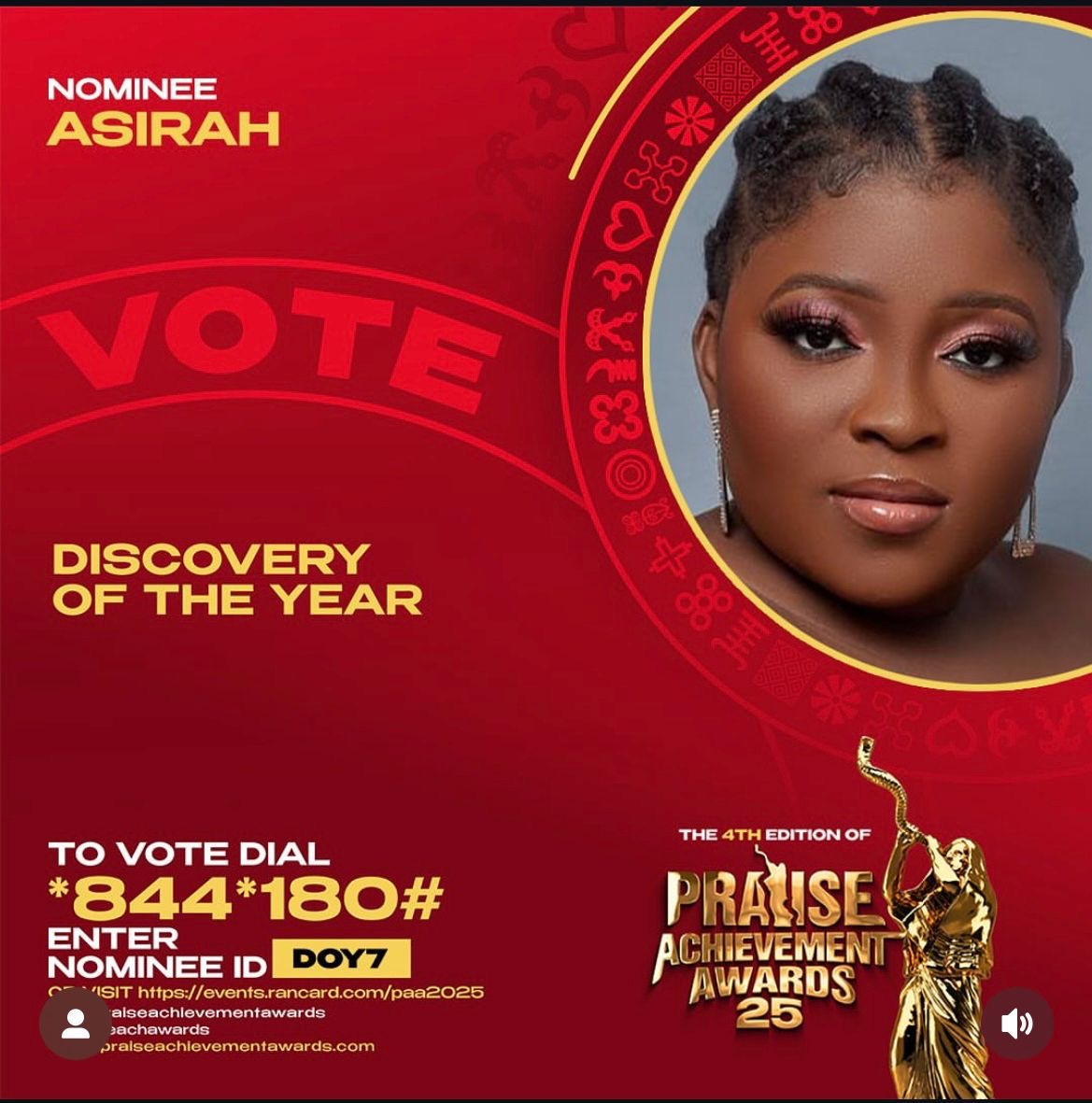 Gospel Artiste Asirah Nominated for “Discovery of the Year” at 2025 Praise Achievement Awards